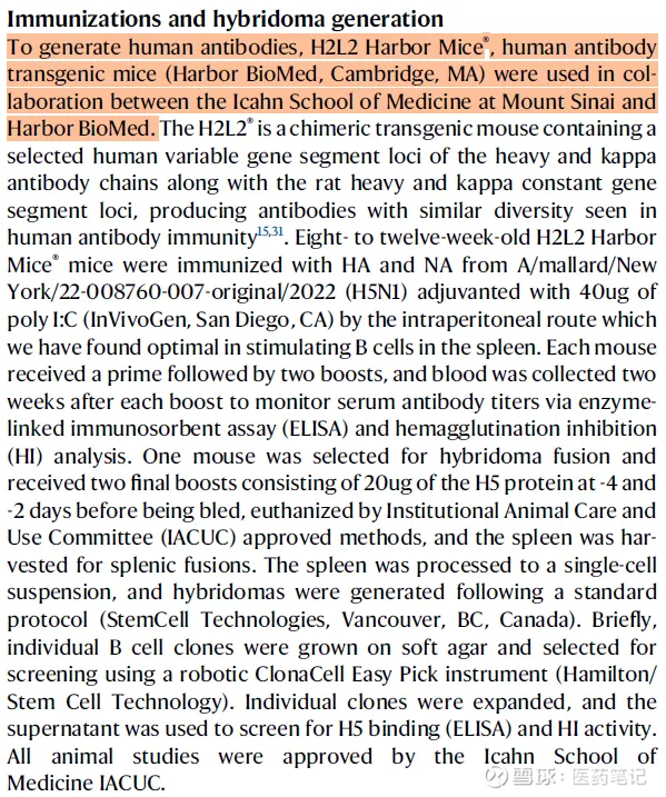 值得注意的是,对于H5N1中和抗体的研发,来自于合作方和铂医药的H2L2 Harbour Mice®转基因小鼠抗体发现技术平台。