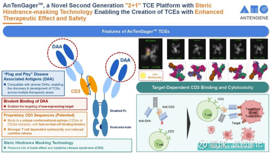 德琪医药建立了新一代2+1 TCE技术平台AnTenGager,通过空间位阻遮蔽实现DAA依赖性的T细胞激活,从而达到有效性与安全性的最佳平衡。