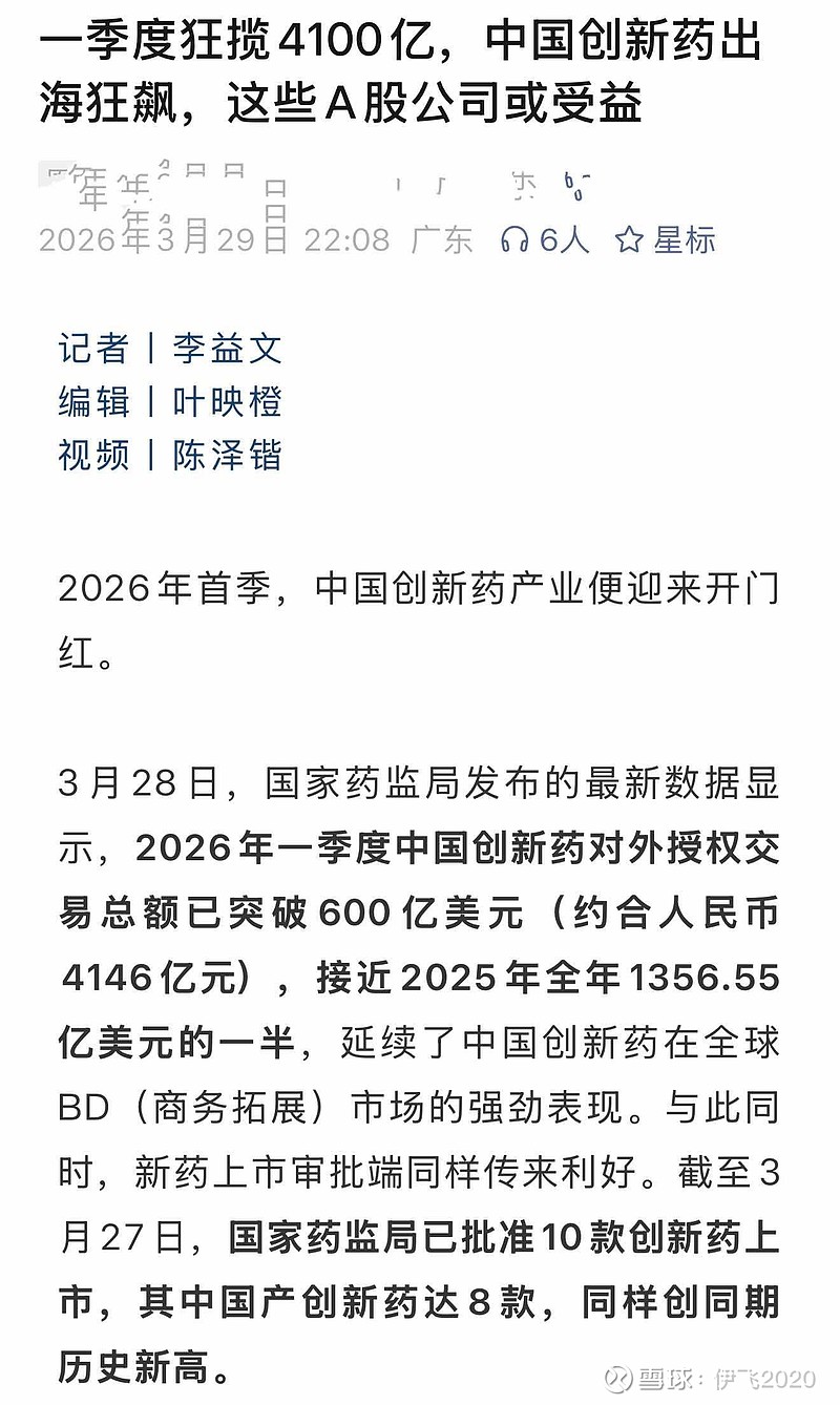 一季度还没结束~创新药对外授权交易总额就接近去年一半了~这个数万亿的市场增长远超预期!目前大多数个股估值都属于底部区间,在大部分行业还属于下行区间,而AI科技股已经估值高的惊人的情况下,非常有必要中期重点关注创新药产业链~#创新药# #创新药概念活跃,联环药业涨停#