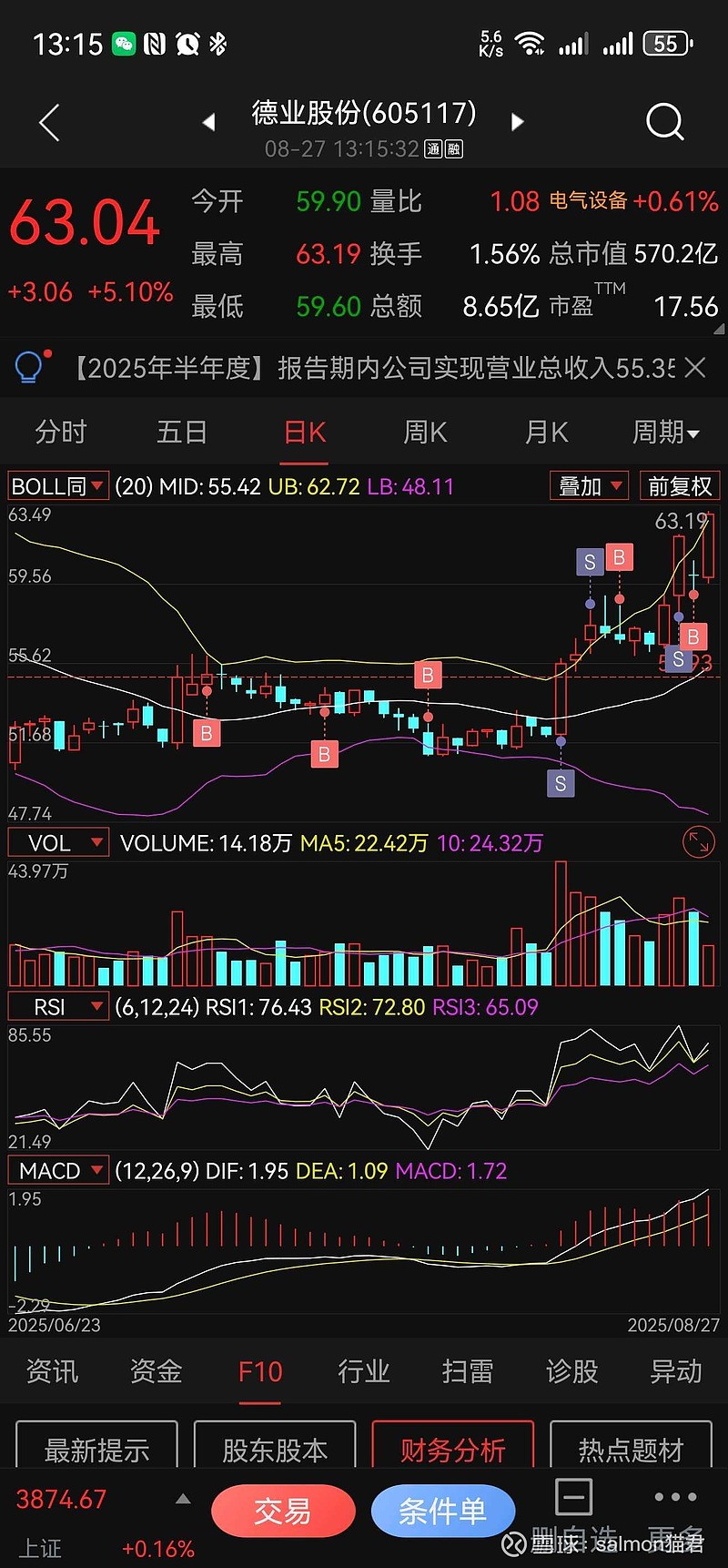 德业的操作还是很漂亮的,特别是昨天财报出来后大跌,果断又加了2层仓位