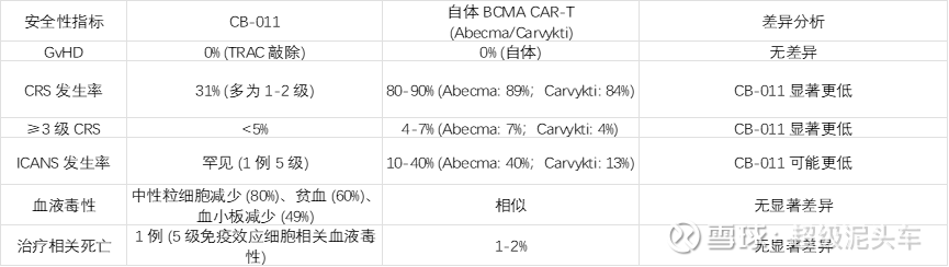 l 下图则是安全性数据,自体CAR-T安全性再次验证不如通用型CAR-T。