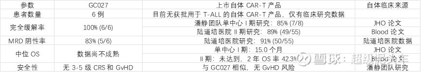 无差异很好理解,敲除B2M是为了在没有深度清淋的情况下防止宿主T细胞攻击CAR-T,但是GC027可以显示出其CD7靶点的免疫细胞清除能力和CD7阴性宿主T细胞后续的扩增并配合芦可替尼使用,可以使免疫系统重建适应CD7,所以无需敲除B2M。