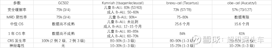 其他同靶点同适应症自体CAR-T数据如下: