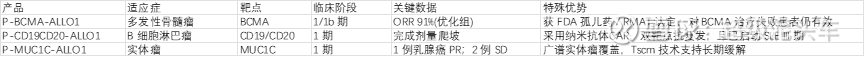 整体来看较为成熟,P-MUC1C-ALLO1太早期暂时不看,P-CD19CD20-ALLO1虽然有血液瘤和自免适应症均布局,但血液瘤的临床1期都尚未完成,所以也不评价,主要看获FDA孤儿药/RMAT认定的1b期的P-BCMA-ALLO1。