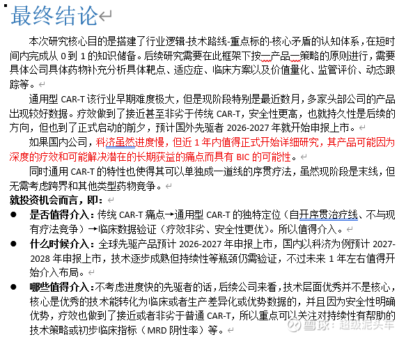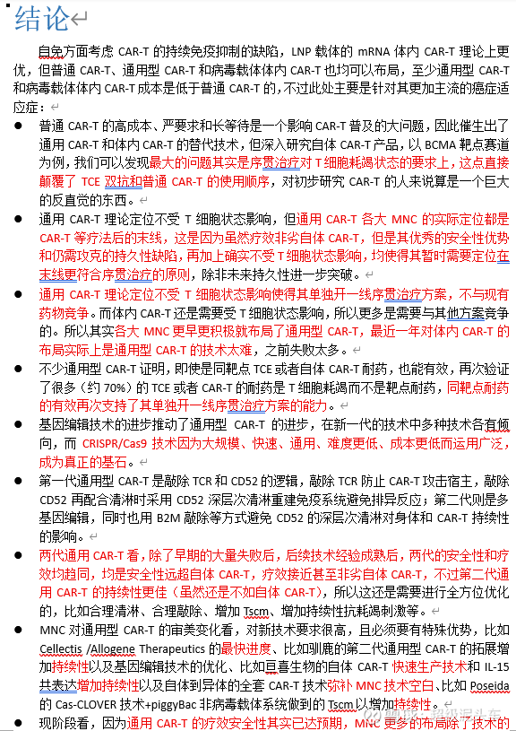 CAR-T行业在自体CAR-T方面的投资研究可以说是非常详细了,所以作为新人,我主要是做体内CAR-T和通用型CAR-T的开荒工作。