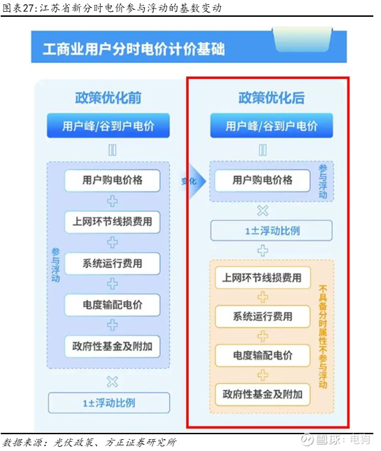 江苏光伏政策:这图很好理解,就是浮动差变小了,预计工商业储能irr从21.32%将减小至9.32%,也就是你技术牛这能挣钱你就干,不行交给火电的意思。![]()