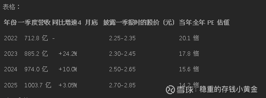 今年一季报的利润增速 24%-36%,比过去两年的增速更高,预期股价会快速涨到 3.2-3.6 元,然后中报披露后,如果上半年利润达到 50 亿(同比增长 30%),会进一步确认全年的趋势,股价或能挑战 3.8-4.0 元的位置。