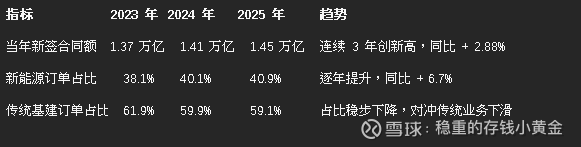 公司 2025 年全年新签合同额达14493.84 亿元,同比增长 2.88%,再创历史新高;其中新能源及综合智慧能源新签合同额 5925.78 亿元,同比增长 6.7%,占比超 40%,风光储、特高压等高端业务订单饱满,这意味着公司未来 2-3 年的营收增长有明确的订单支撑,但文章对此只字未提。