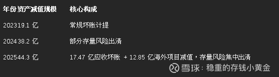 2025 年的业绩下滑,本质是一次性的风险出清,不是主营业务恶化,历史减值数据也验证了这是阶段性的底部: