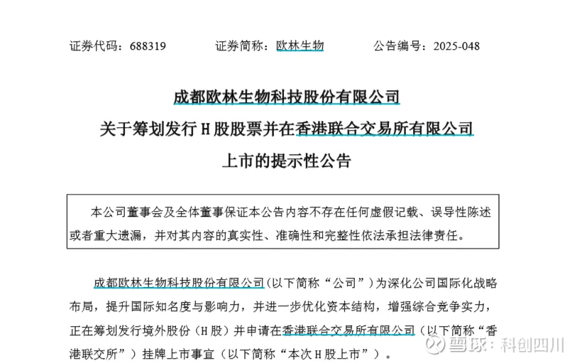 9月23日,欧林生物公告称,为深化国际化战略、优化资本结构,公司正筹划发行H股并在香港联交所挂牌上市。欧林生物成立于2009年,专注于人用疫苗研发、生产及销售,于2021年6月8日成功登陆上交所科创板。