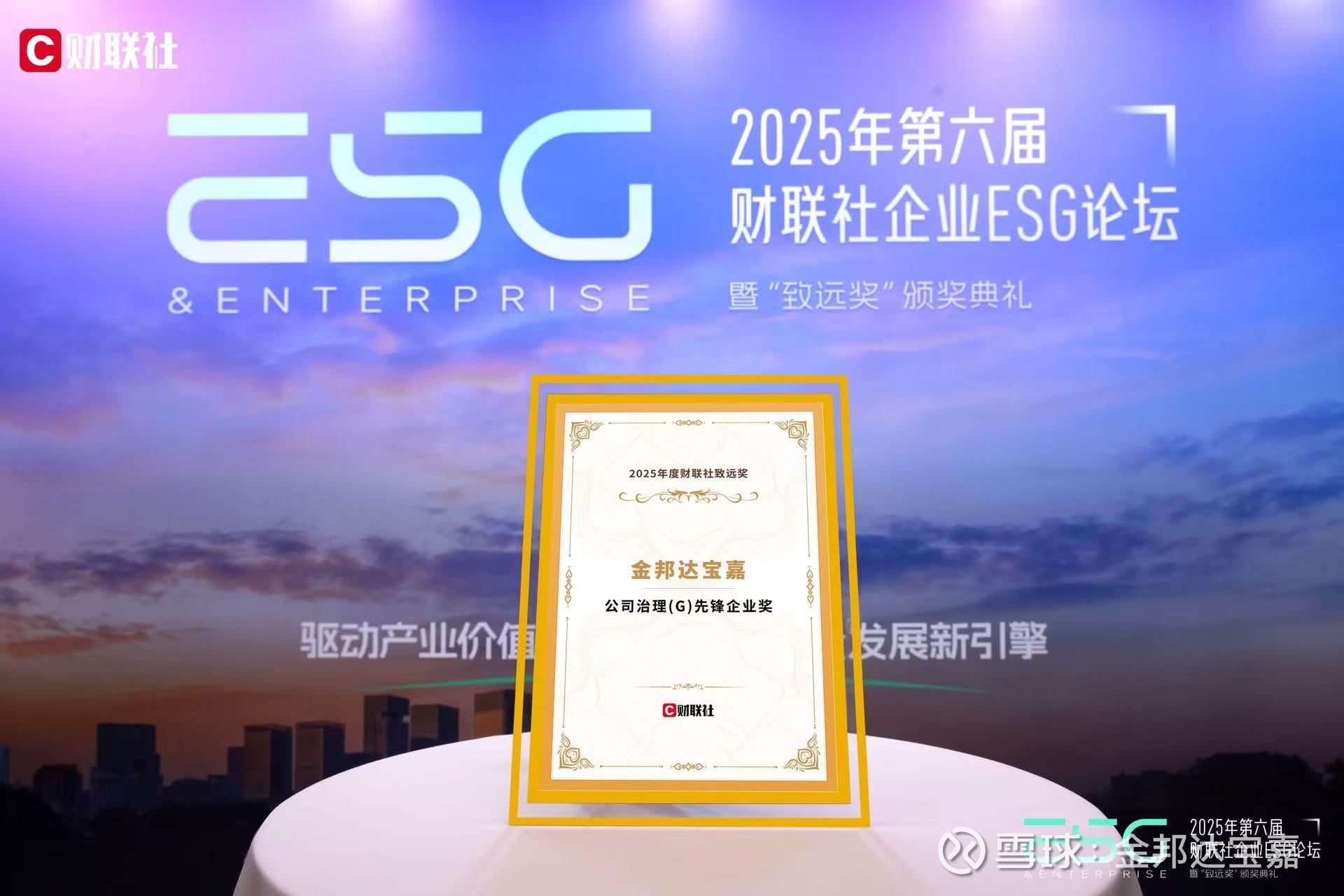 10月31日,备受瞩目的财联社年度ESG致远奖评选隆重揭晓,金邦达凭借在公司治理领域的卓越实践与持续创新,荣获“公司治理先锋企业奖”。此次获奖不仅彰显了金邦达在环境、社会与治理(ESG)体系建设中的领先地位,也标志着其在推动企业高质量、可持续发展方面迈出了坚实一步。
