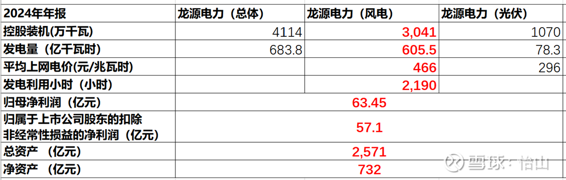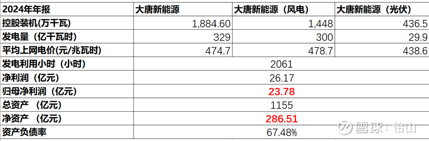 再看看大唐新能源2024年财报,风电发电量占比90%,算是主力为风电的电力公司。风电总资产1155亿,净资产286亿,归母净利润23.78亿,净资产收益率ROE为8.3%,和龙源电力接近,还算不错。