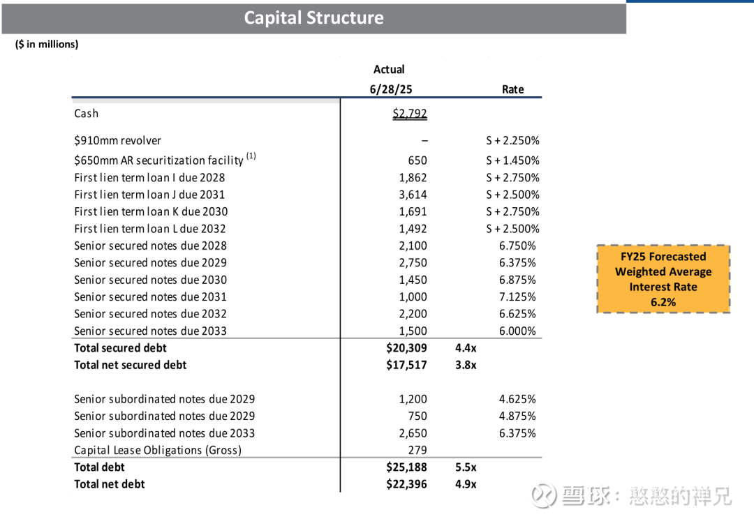 钱从哪来?公司在2025年8月19日成功完成了50亿美元的新增债务融资,其中包括利率为6.250%的优先担保票据、6.750%的次级票据和新的定期贷款。具体细节如下:
