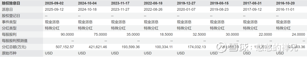 在2025年8月20日,公司再次展现了这种“暴力美学”。根据公司向美国SEC提交的8-K文件,公司宣布派发每股90美元的特别现金股息,总额接近50亿美元!