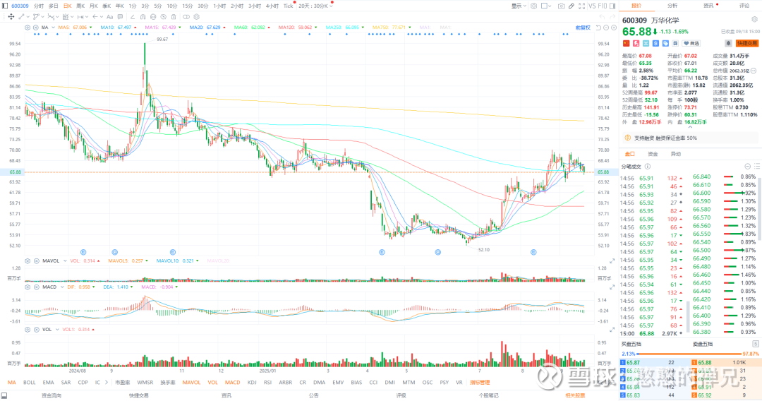 大摩预测万华化学2024年盈利120亿元,2025年将增长至近150亿元!他们果断将评级上调至“超配”,给出80元的目标价,对应约20%的上涨空间。