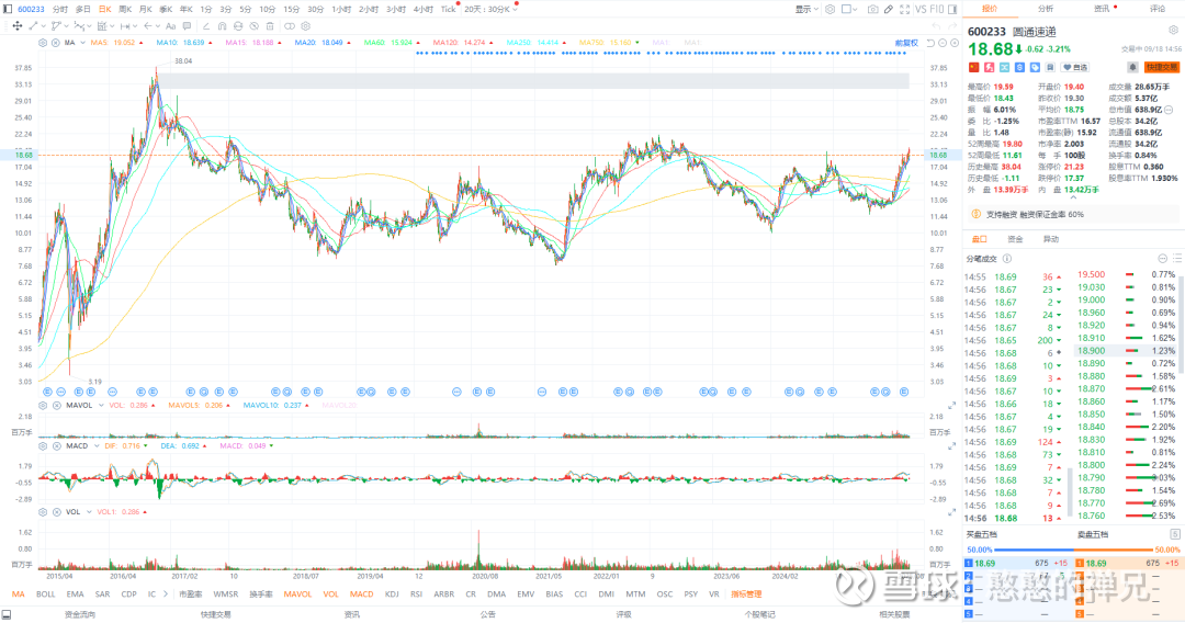 估值看空间:目前,圆通的估值在A股同行里是最低的,2026年PE仅14倍,远低于申通(18倍)和韵达(15倍)。业绩最稳,估值最低,这就是典型的投资机会。大摩给出的目标价是21.5元。