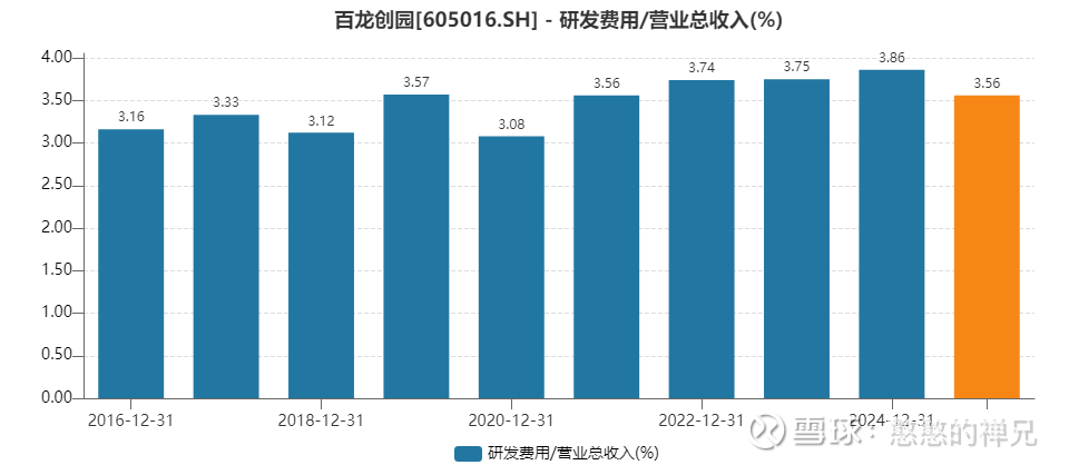 百龙创园的研发投入展现了极强的战略决心和持续加速的态势。与销售和管理费用不同,公司的研发费用无论从绝对金额还是占收入比例上,都呈现出清晰的、加速的上升趋势。这表明,技术创新不仅是公司的成本项,更是其发展的核心驱动引擎和最重要的战略投资方向。禅兄具体展开说一下: