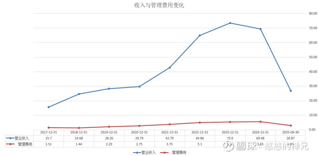 2025年上半年的费用率飙升,是前期帮助公司的“规模效应”开始反噬的结果,主要源于分子和分母两端的双重压力: