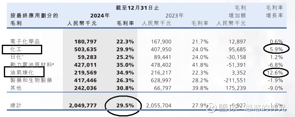 以2024年年报为参考:可以看到公司毛利率较高的应用行业是动力电池35%、油气炼化34.9%、化工29.9%。