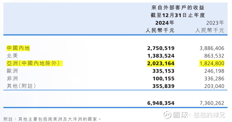 2024年,中国内地收入占比骤降至 39.6%。与此同时,海外所有市场(北美、亚洲、欧洲等)的收入总和占比从47.2%飙升至60.4%,首次超越中国市场,成为公司收入的主要来源。