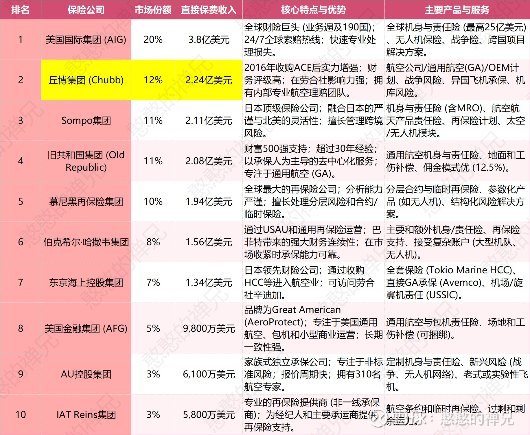 下图是美国市场排名前十的飞机保险公司(基于IB Data Hub 平台的市场份额数据):