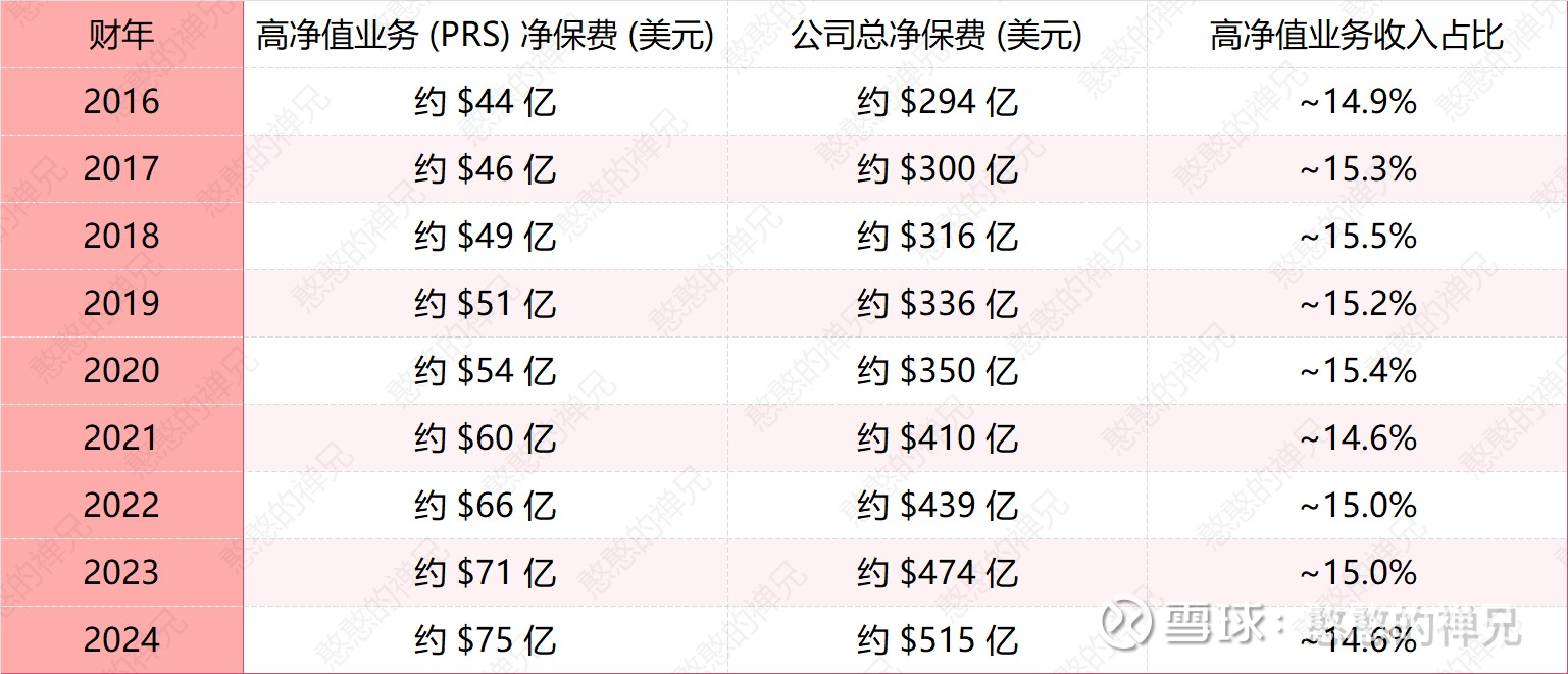 根据安达保险 (Chubb) 官方发布的2024 年致股东信,服务于“高净值家庭”的业务数据如下: