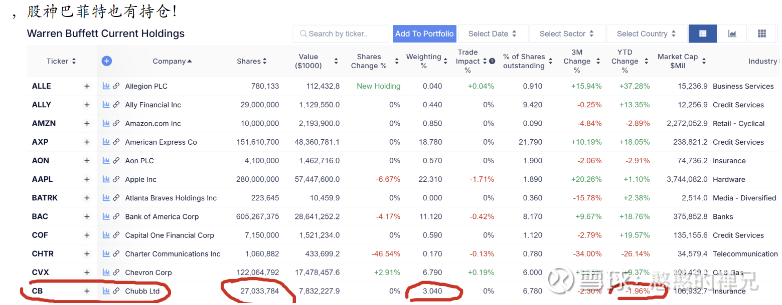 安达保险 (Chubb) 是一家保险行业里的“LV”或“劳力士”—— 它是全球顶级、最会赚钱的公司之一。但现在,市场价格(估值)却很“公道”,甚至偏便宜,股神巴菲特也有持仓!
