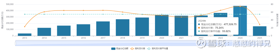 1、高分红确立安全垫:2024年,海天的股息支付率已经达到了75%,算上回购,总现金回报率占到了净利润的约83%。对于一个体量如此庞大的消费龙头,这种分红力度是极其罕见的。