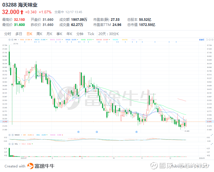 在2025年12月9日,高盛发布了一份关于【海天味业】的深度研报:写了关于中国消费龙头估值重构的巨大机会。