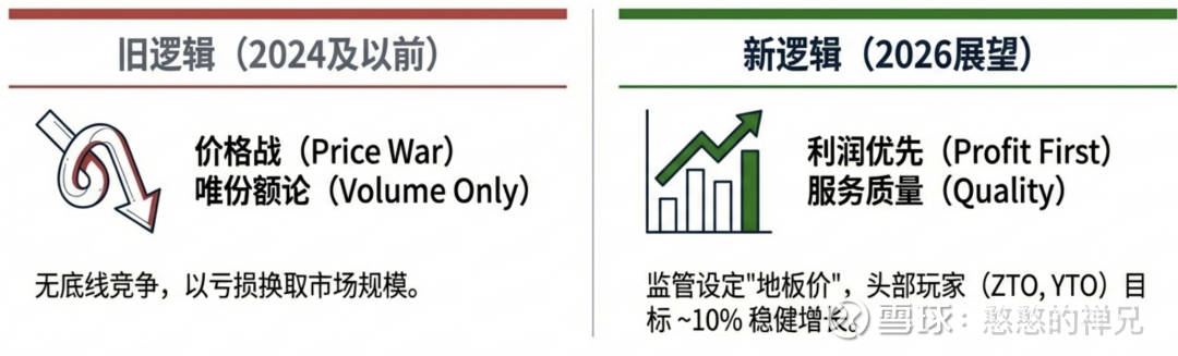 不要相信所谓的“行业件量只有个位数增长”的鬼话。大摩调研显示,头部企业(中通、圆通)依然看好10%以上的增长。更重要的是,价格战打不动了,政策在兜底“地板价”。2026年是头部玩家利润释放的大年,盯着中通和圆通看就行,小公司会死得很惨。