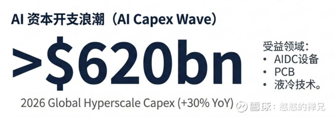 工业板块分化极其严重。大摩的数据很吓人:全球前11大云厂商(Hyperscale)今年的资本开支(Capex)将增长30%以上,总额达到6200亿美金。