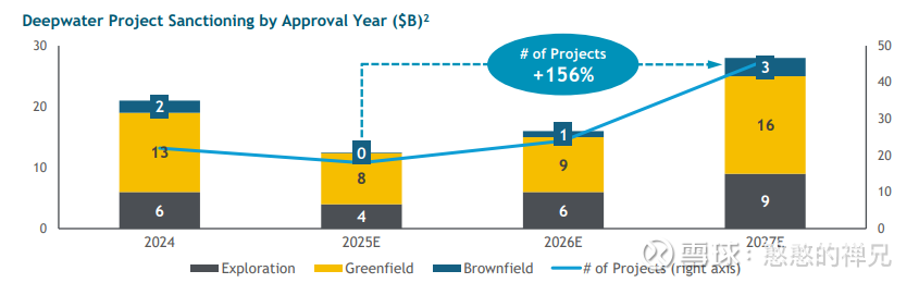 深水复苏:预计到2027年,深水项目的批准量将增加150% 。这是由于陆上页岩油产量增长放缓,全球石油巨头重新将目光投向储量巨大的深海。
