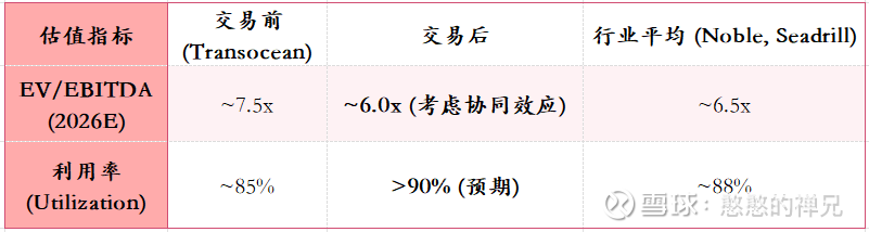 协同效应调整:如果算上2亿美元的协同效应,合并后实体的有效EBITDA倍数将显著低于行业平均水平。这意味着,如果Transocean能执行到位,当前股价是被低估的。