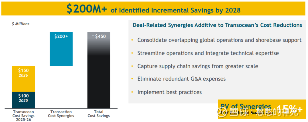 黄色部分: Transocean 自身已有的成本节约计划 ($100M + $150M)。