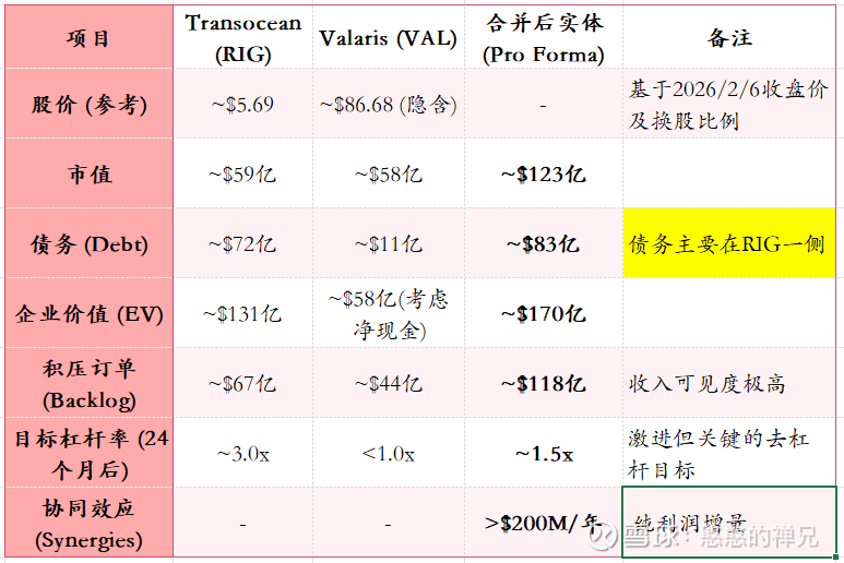 分子端(减少净债务):利用Valaris每年产生的数亿美元自由现金流,加上合并后的协同效应现金流,加速偿还高息债务。