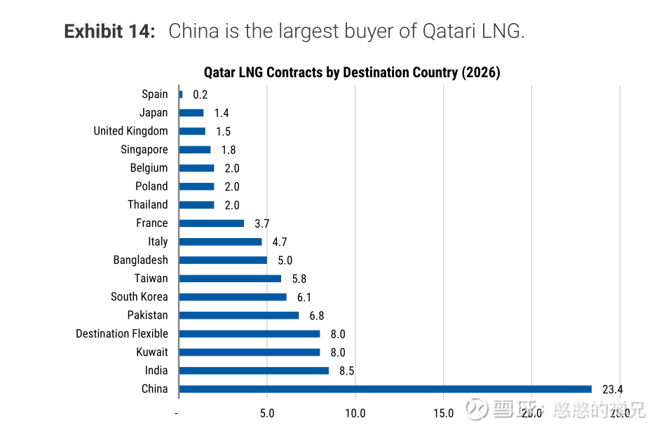2026年,我们国家跟卡塔尔签的合同量高达23.4百万吨(mt) 。在咱们国家的天然气进口大盘子里,卡塔尔的供气量大概占到了30% 。