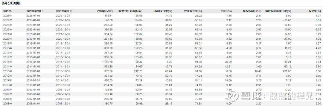 因此,禅兄看到的是常识的回归:一家每年能产生400多亿绝对自由现金流、债务成本仅3.3%、管理层诚实且不断提高分红比例的公司,即便未来零增长,其本身的高股息率和持续的回购/降负债动作,就已经能提供远超长期国债的年化回报。只要长和不出现全局性的系统性崩溃,其当期产生的巨额所有者利润,迟早会通过分红和债务缩减的复利效应,填平估值的鸿沟。