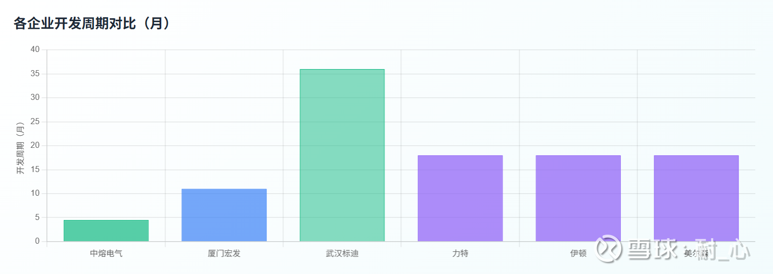 下图为新能源熔断器主要市场参与企业的开发认证周期时间:中熔电气3-6 个月开发新品、6-12 个月批量交付,在激烈竞争的汽车行业,更快的相应市场速度,有助于车企抢占市场先机。