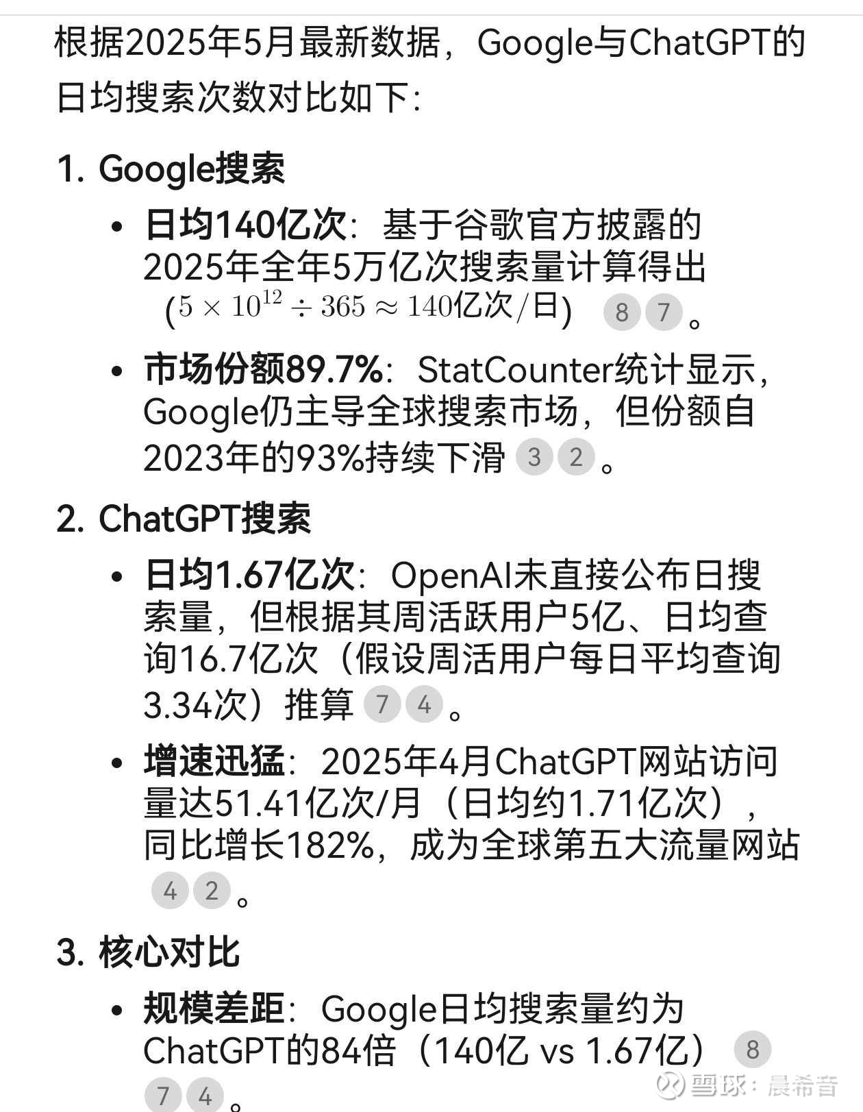 事实:Google日均搜索量,当前是ChatGPT的84倍(140亿 vs 1.67亿) 。