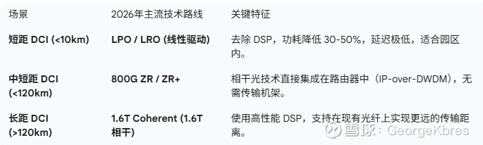 2026年的传输方案不再是单一的,而是根据距离分层: