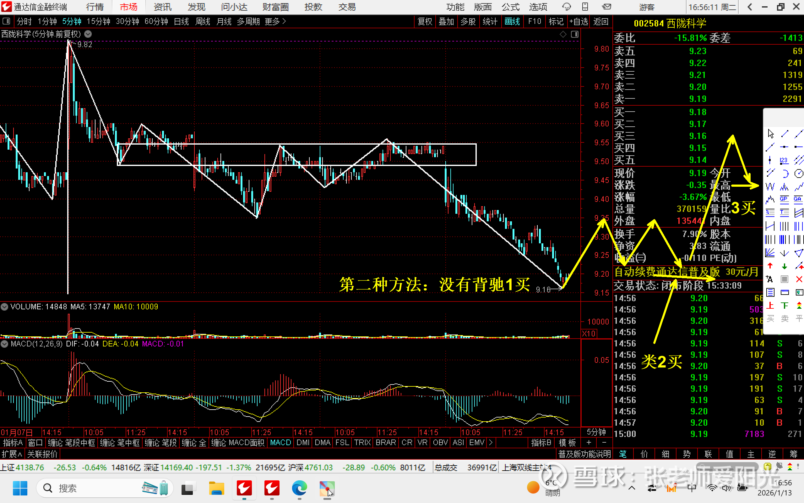 所以今天下跌,是没有操作的,因为下跌前已经完成卖出操作了。今天唯一需要进行操作的,就是择机买入,因为正在下跌,没有形成中枢。一天都没有买点,那就等待。
