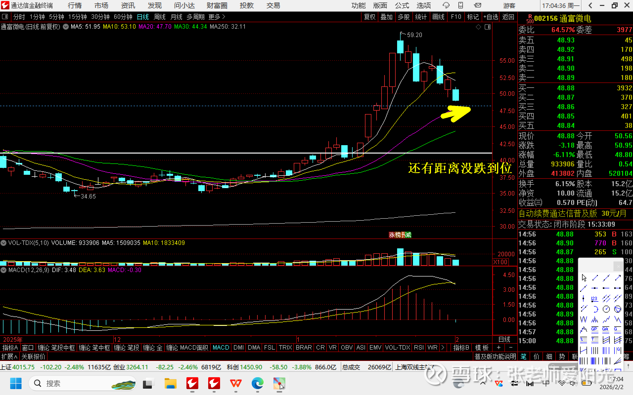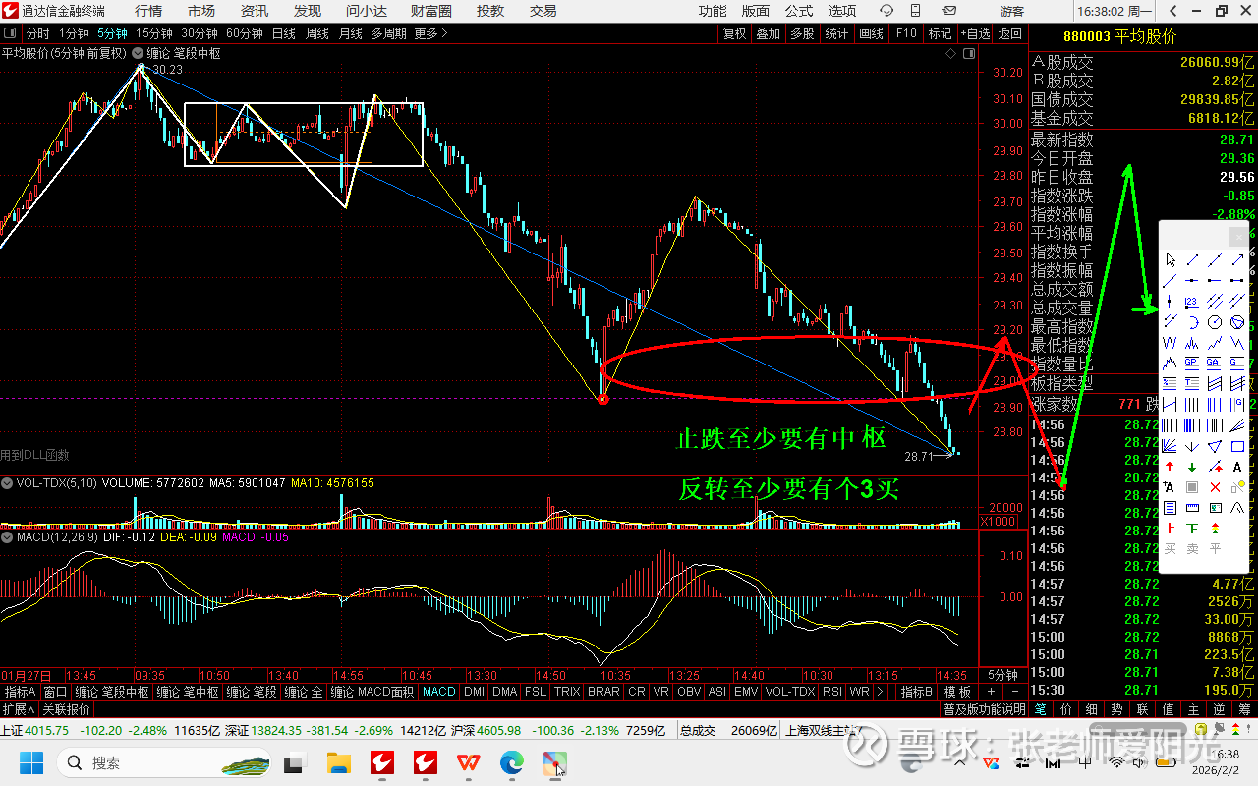 而通富微电虽然有中枢了,只能说左侧抄底才在尾盘买,可是大环境不好抄底没有性价比,就得等3买,3买出来后不加速回踩中枢底再买。