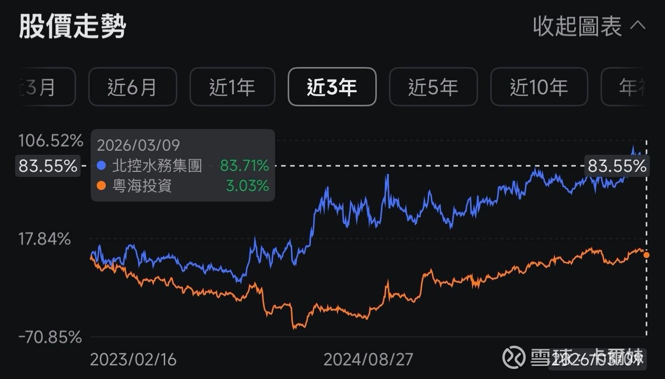 供水與污水,雖有業務差異及稍不同,本質上都是水務營運,三年間,一個飛上了天,一個落掉了海