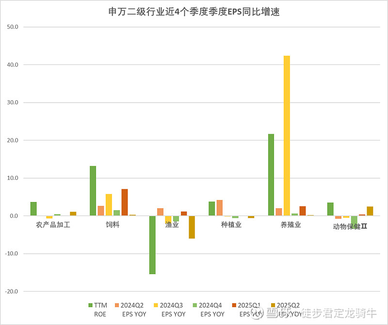$畜牧养殖ETF(SH516670)$ 【行业数据观察】近4个季度,农林牧渔行业下养殖业业绩出现明显的反转,结合公司财报我们知道,主要是养猪这块儿业绩变好了(如牧原股份等),带动上游饲料业绩也起来了,不过养殖这块儿的业绩弹性很大。这个数据很好,能解释为何当前老登小等为何这样大的分歧。数据好是好,不过只能等财报披露后一段时间更新(数据来源:iFind)$牧原股份(SZ002714)$ $养殖ETF(SZ159865)$