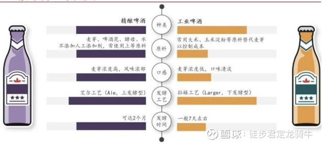 其实,公司发力的精酿啤酒与日常喝的 “工业啤酒” 有很大不同,不仅是发酵工艺、市场,原料层面麦芽浓度更高,口感更好,具体对比如下: