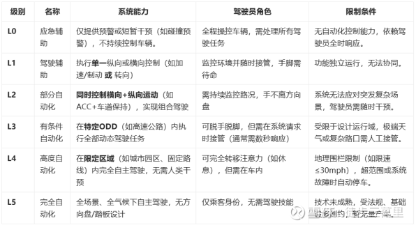 图:国际汽车工程师学会(SAE)自动驾驶分级标准