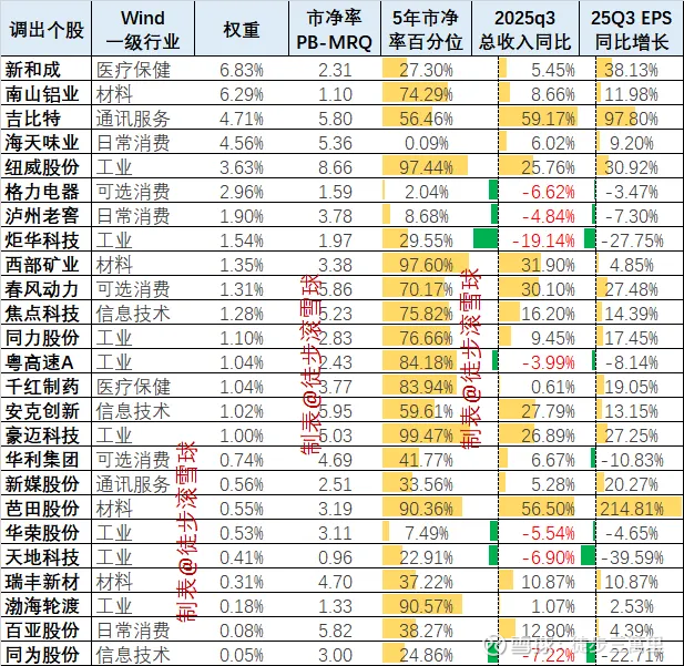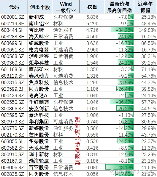 从拟调出股名单看,新和成、南山铝业、吉比特、海天味业、格力电器、泸州老窖赫然在列。