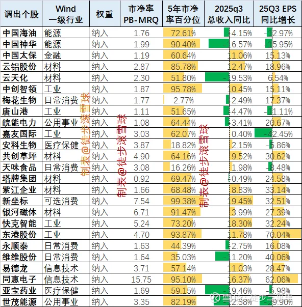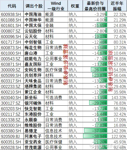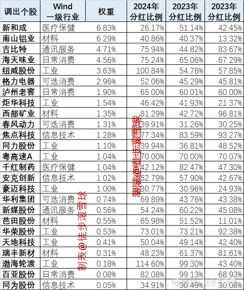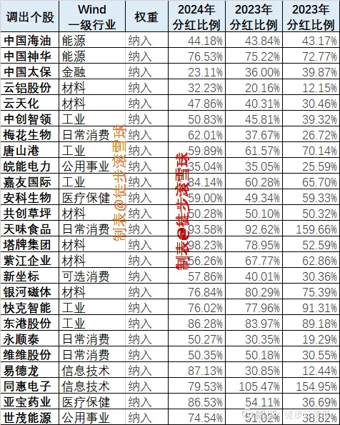 中证全指红利质量成分股50只,本次涉及调整25只,力度可不小。