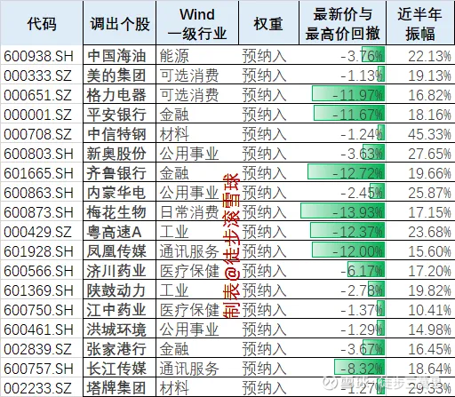 从调出股振幅看,应该是超出了指数容忍标准,所以被移除了指数。