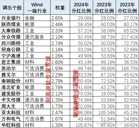 从调出榜看,华旺科技24年分红率接近106%,亚太科技也达到96%,苏泊尔连续99%的分红率,确实有点过高,不太符合指数筛选规则。